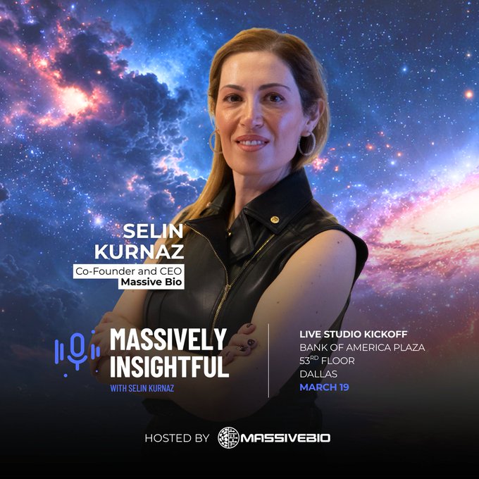 @MassiveBio Join us in Dallas for the launch of Massively Insightful. Request your seat. On March 19 in Dallas, our Co-Founder & CEO, Selin Kurnaz, will host the kickoff of Massively Insightful, a live studio summit bringing together leaders across oncology, AI, pharma, payers, and