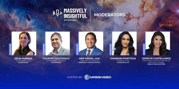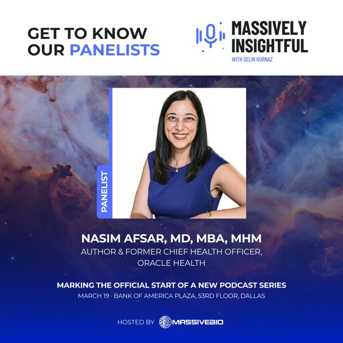 @MassiveBio ✨ Meet the first line of our #MassivelyInsightfulSummit speakers, the live studio kickoff of a brand-new podcast series by our Co-Founder & CEO, Selin Kurnaz, PhD. 🎙️ Nasim Afsar, MD MBA MHM 🎙️ Arif Kamal, MD MBA MHS 🎙️ Panna Sharma 🎙️ Chandini Kumar ttps://t.co/ThIcw1j3Wp