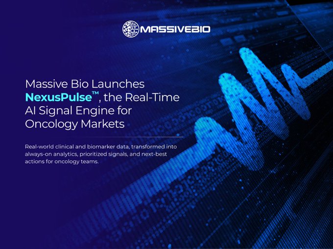 @MassiveBio Massive Bio launches NexusPulse™, the real-time AI signal engine for oncology markets. Always-on analytics. Prioritized signals. Next-best actions. 40%+ reduction in signal-to-action time in early deployments. https://t.co/77tJlbfV56 #NexusPulse #MassiveBio #Oncolomassivebio.com/massive-bio-la…56 #NexusPulse #MassiveBio #OncologMg